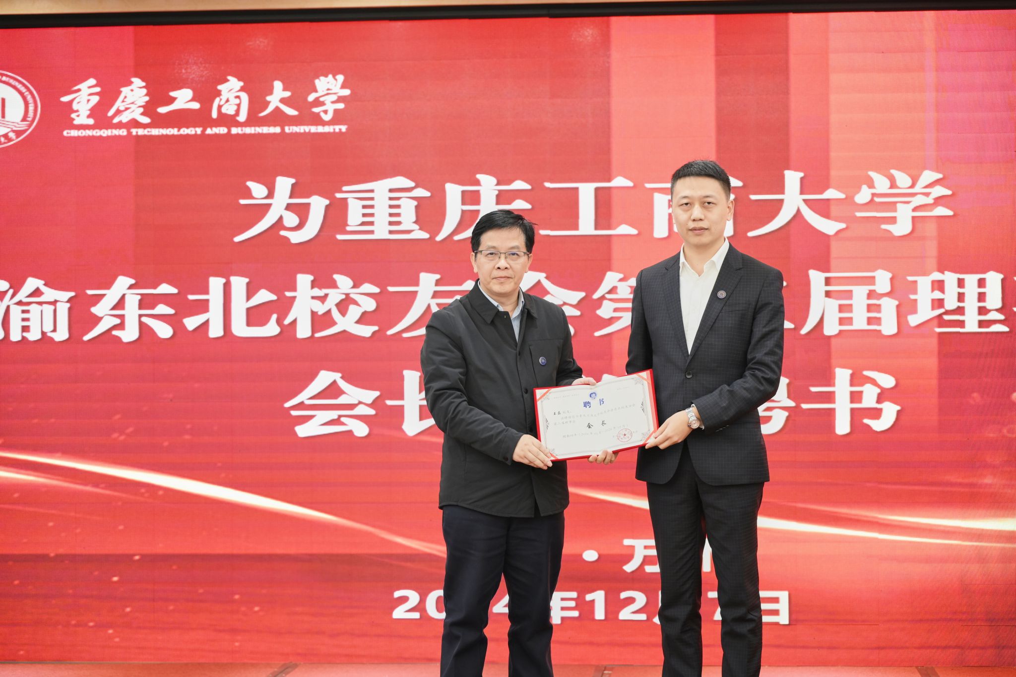 会议审议通过了《万象城娱乐awc线路渝东北校友会管理办法》,选举产生了万象城娱乐awc线路渝东北校友会第二届理事会。与会领导为新当选的渝东北校友会第二届理事会成员颁发了聘书。