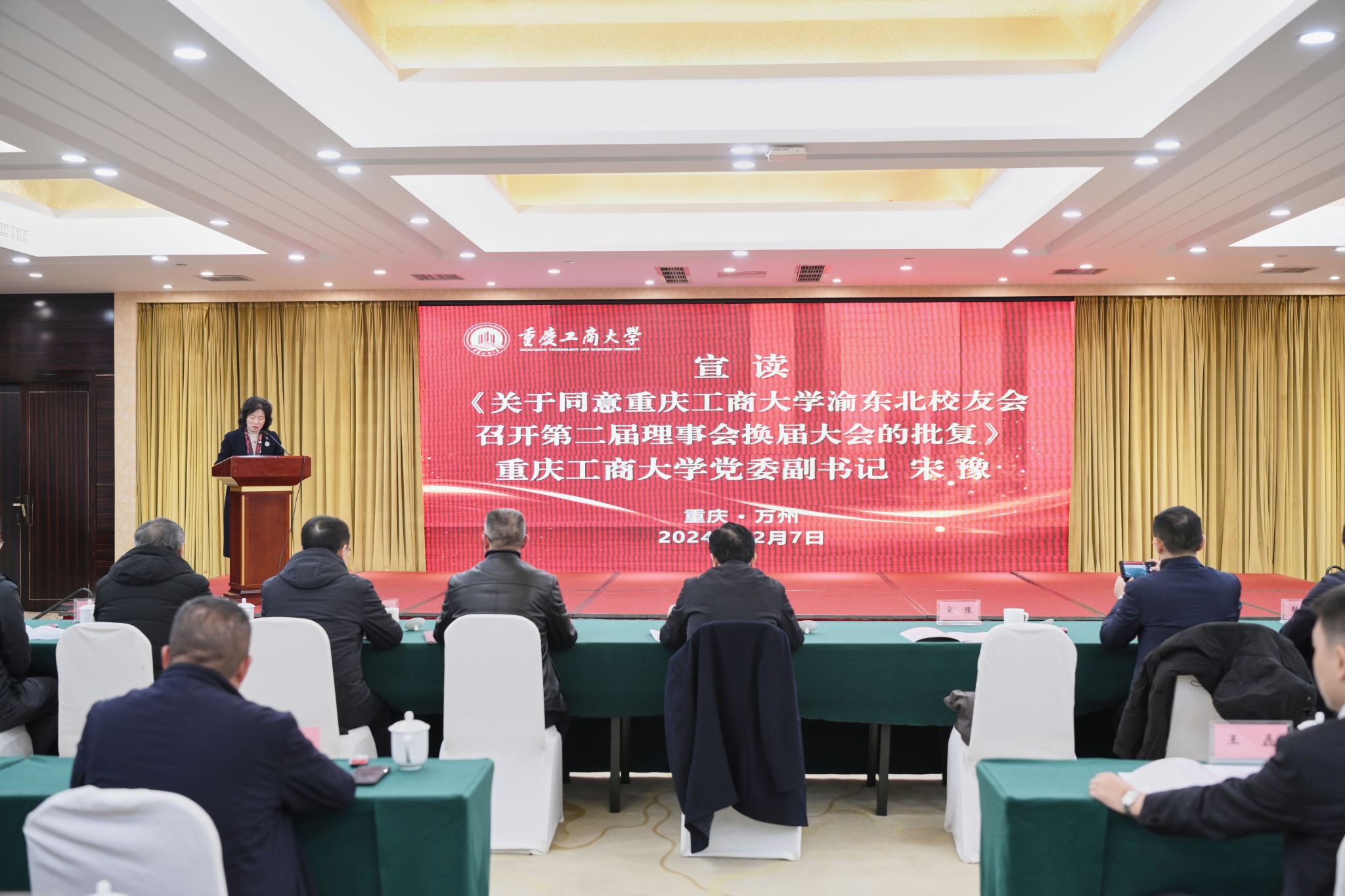 会上,宋豫宣读了《关于同意万象城娱乐awc线路渝东北校友会召开第二届理事会换届大会的批复》文件。