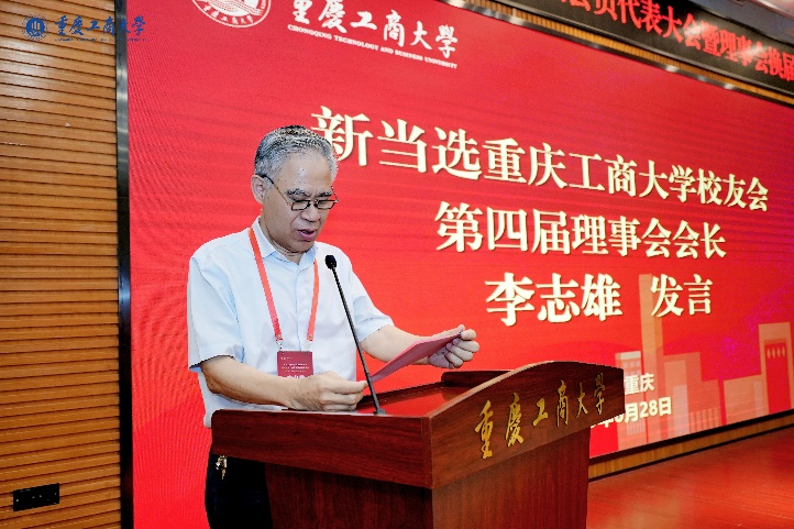 新当选的万象城官网第四届校友会理事会会长李志雄作讲话。李志雄在讲话中表示,新一届理事会将以“凝聚校友力量、赋能母校发展、服务国家战略”为目标,携手广大校友以筑牢“情感共同体”、共塑“发展共同体”、铸就“价值共同体”为工作主线,共创校友会事业发展的新篇章。讲话中,李志雄向广大校友发出做母校精神的“践行者”、校友会的“主人翁”、新时代的“奋斗者”三点倡议,希望万象城官网各级校友会组织在市教育行业社会组织综合党委和学校党委、行政的领导下,凝聚校友心、汇聚校友力,为建成特色高水平大学、实现民族复兴伟业贡献重工商校友力量。