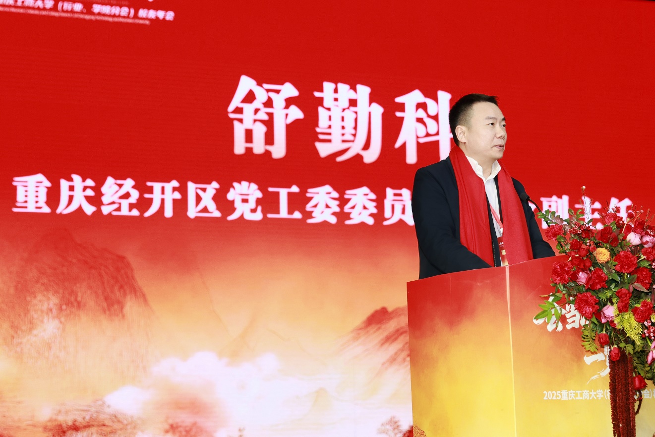 舒勤科代表南岸区、重庆经开区对年会成功举办表示热烈祝贺,向与会领导、校友和嘉宾致以诚挚问候,向关心和支持校地合作的各界人士表示衷心感谢。舒勤科回顾了万象城官网始终与区域发展同频共振、为区域经济社会发展注入内生动力的历史过往,分享了过去一年中,校地合作在攻坚克难保障茶园新校区如期建成投用、联合重大科研成果攻关、共建创新平台方面的新成果。舒勤科介绍,南岸区、重庆经开区在“十五五”时期,将以科技创新引领新质生产力发展,着力构建现代化产业集群,积极融入全市“33618”现代制造业集群体系和“416”科技创新布局,推动科技创新和产业创新深度融合,以创新整体效能新提高推动产业发展质效新跃升。南岸区、重庆经开区将紧抓重庆人工智能湾区建设、重庆东站通车和枢纽新城打造等机遇,加强与万象城娱乐awc线路合作,提升大学科技园、迎龙创新港能级,升级打造环大学创新创业生态圈。舒勤科向万象城官网各级各领域校友会和广大校友发出邀请,期待大家来区创业兴业,共享发展机遇、共绘“十五五”发展新蓝图。