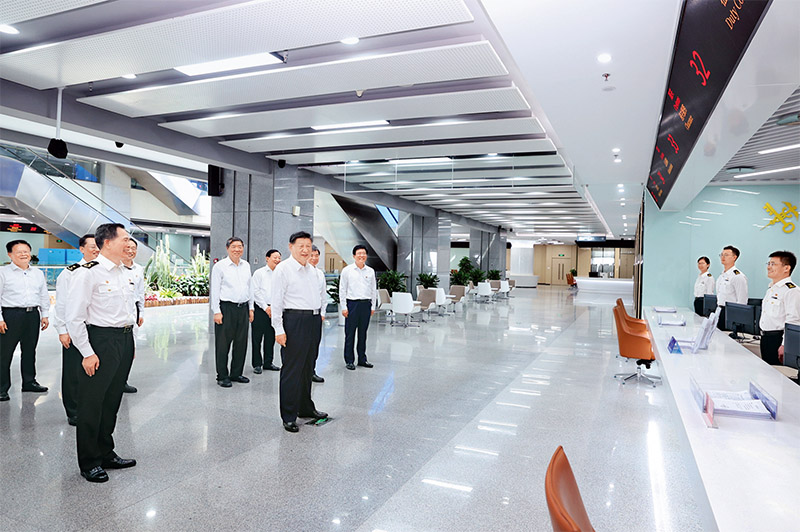2024年10月15日至16日,中共中央总书记、国家主席、中央军委主席习近平在福建考察。这是16日上午,习近平在中国(福建)自由贸易试验区厦门片区考察时,同综合服务大厅窗口工作人员亲切交流。 新华社记者 鞠鹏/摄